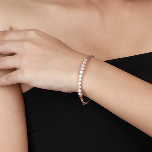 Introducing the Floral Flare Bracelet: a beautifully crafted piece that embodies both elegance and sophistication. This bracelet features a radiant round-cut diamond at its center, surrounded by a halo of smaller round-cut diamonds, creating a floral-inspired design that exudes timeless charm. The intricately textured gold band and it’s unique shape adds a touch of luxury, enhancing the brilliance of the diamonds. Perfect for those who appreciate both classic beauty and contemporary design, the Floral Flare Bracelet is an exquisite addition to any jewelry collection.