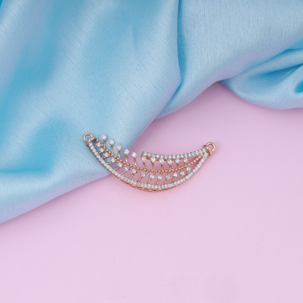 Introducing the Shiny Leaf Diamond Mangalsutra: a delicate piece that beautifully captures the elegance of nature. This mangalsutra features a graceful leaf motif, intricately designed with sparkling diamonds that follow the gentle curve of the leaf. The combination of round-cut diamonds and marquise-shaped diamond accents creates a stunning visual effect, enhancing the overall brilliance of the piece. The Shiny Leaf Diamond Mangalsutra is perfect for the modern bride who seeks a unique blend of natural beauty and timeless sophistication, making it a cherished symbol of love and commitment.