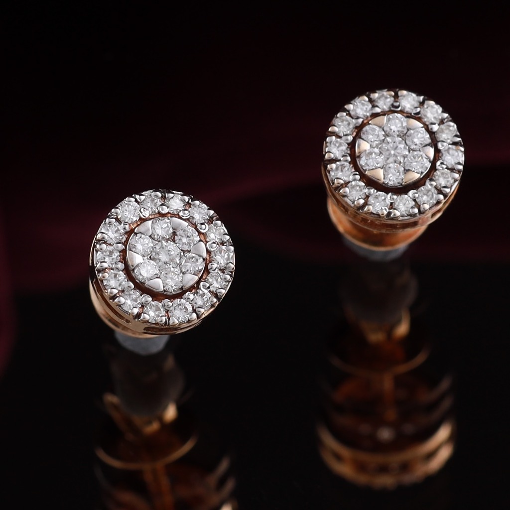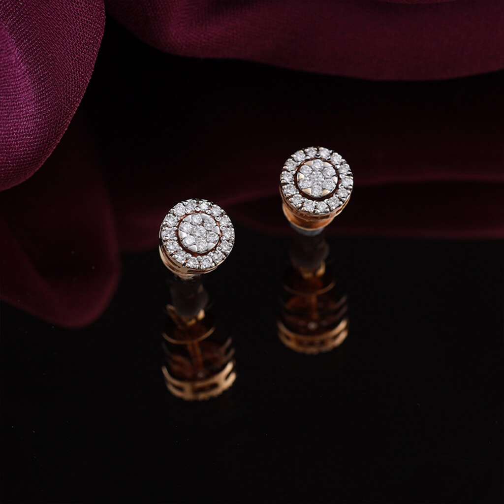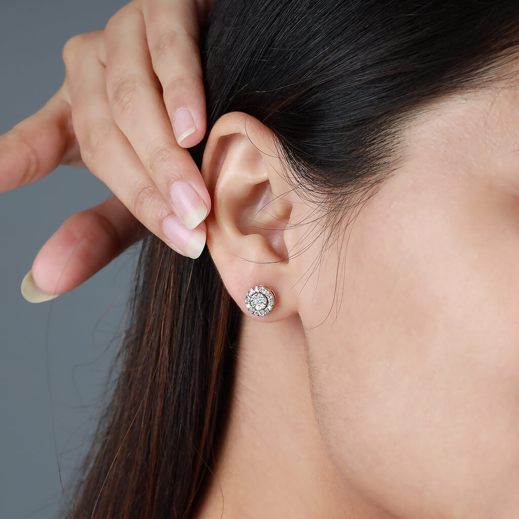 These classic round stud earrings feature a central round diamond surrounded by a delicate halo of smaller diamonds, creating a timeless and elegant look. Perfect for everyday wear or special occasions, these earrings are a must-have for any jewelry collection, offering a subtle yet sophisticated sparkle.